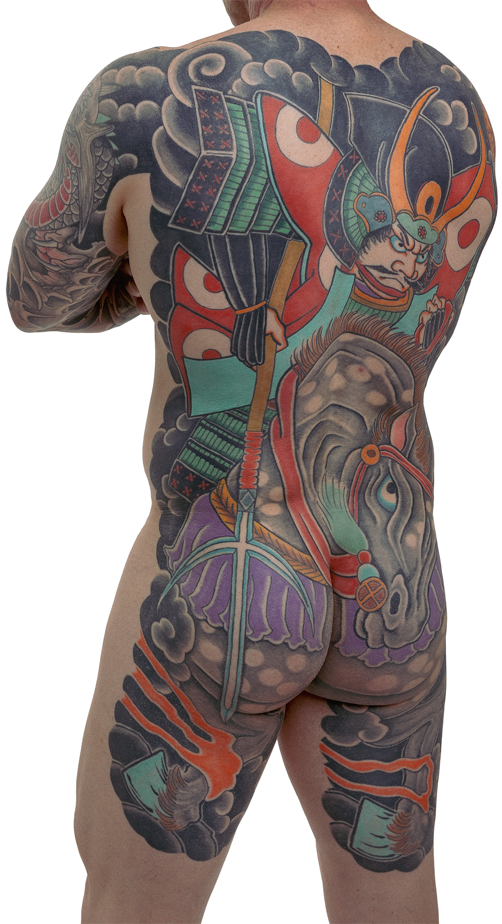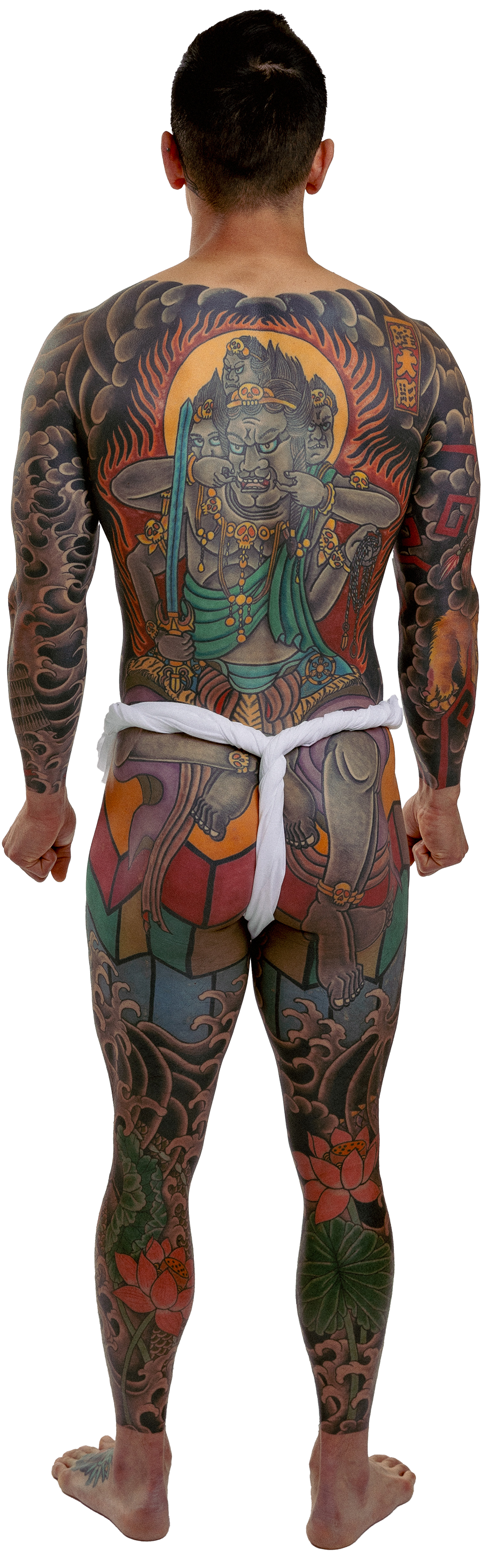 With tattooing, you always have to consider the source; depending on which master you study with, they’re going to have a different point of view. I work with Horifuji and Horitomo; they have their ways. Tomo and Fuji read a lot of stuff, but everyone has different ways. People have various ways to justify what they’re doing. It’s not necessarily right or wrong; they’re just different. There are clearly things that are wrong culturally, but within that.
