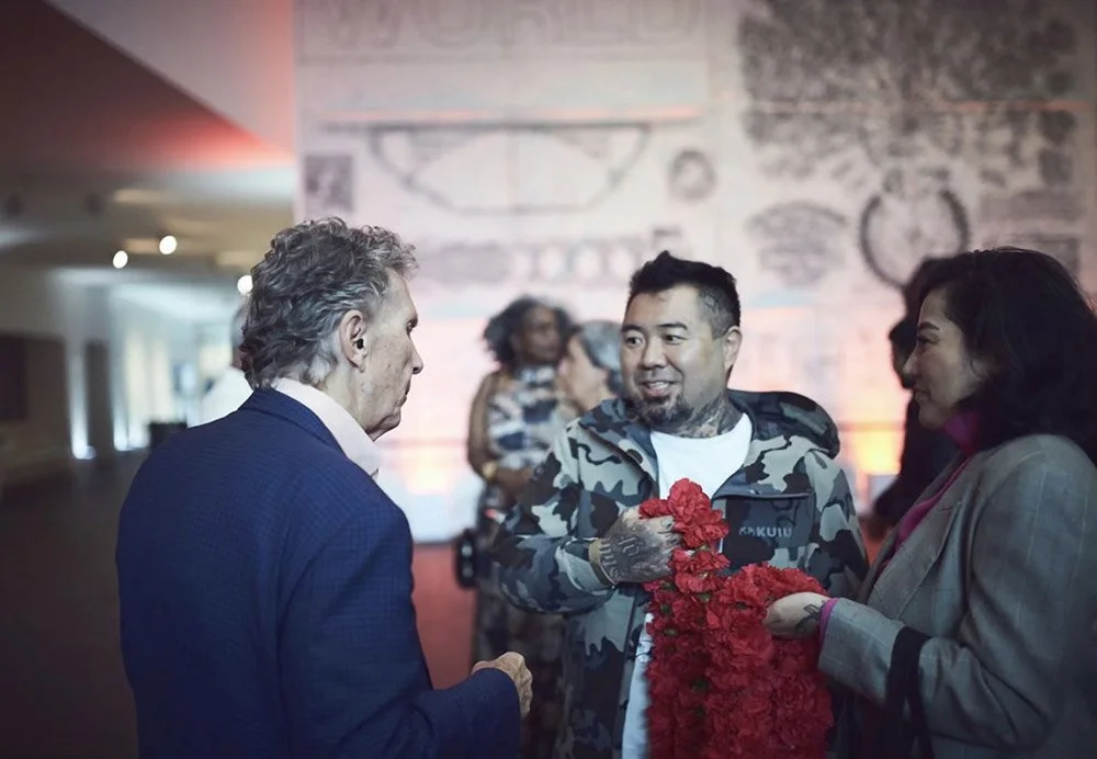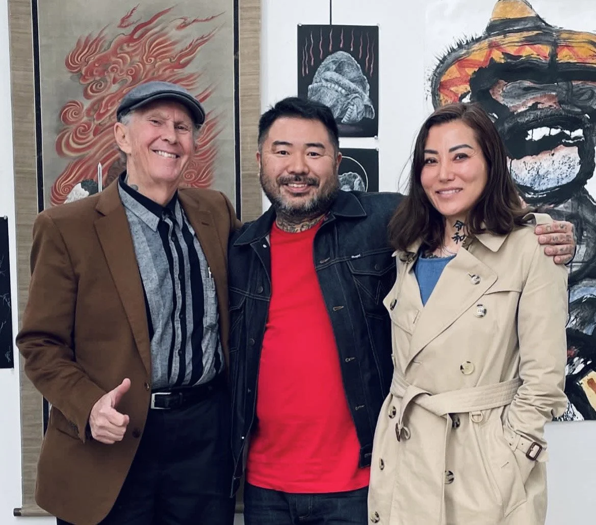 Reception for Ed Hardy Retrospective, 2019 - Ed Hardy, Taki and Molly Kitamura.